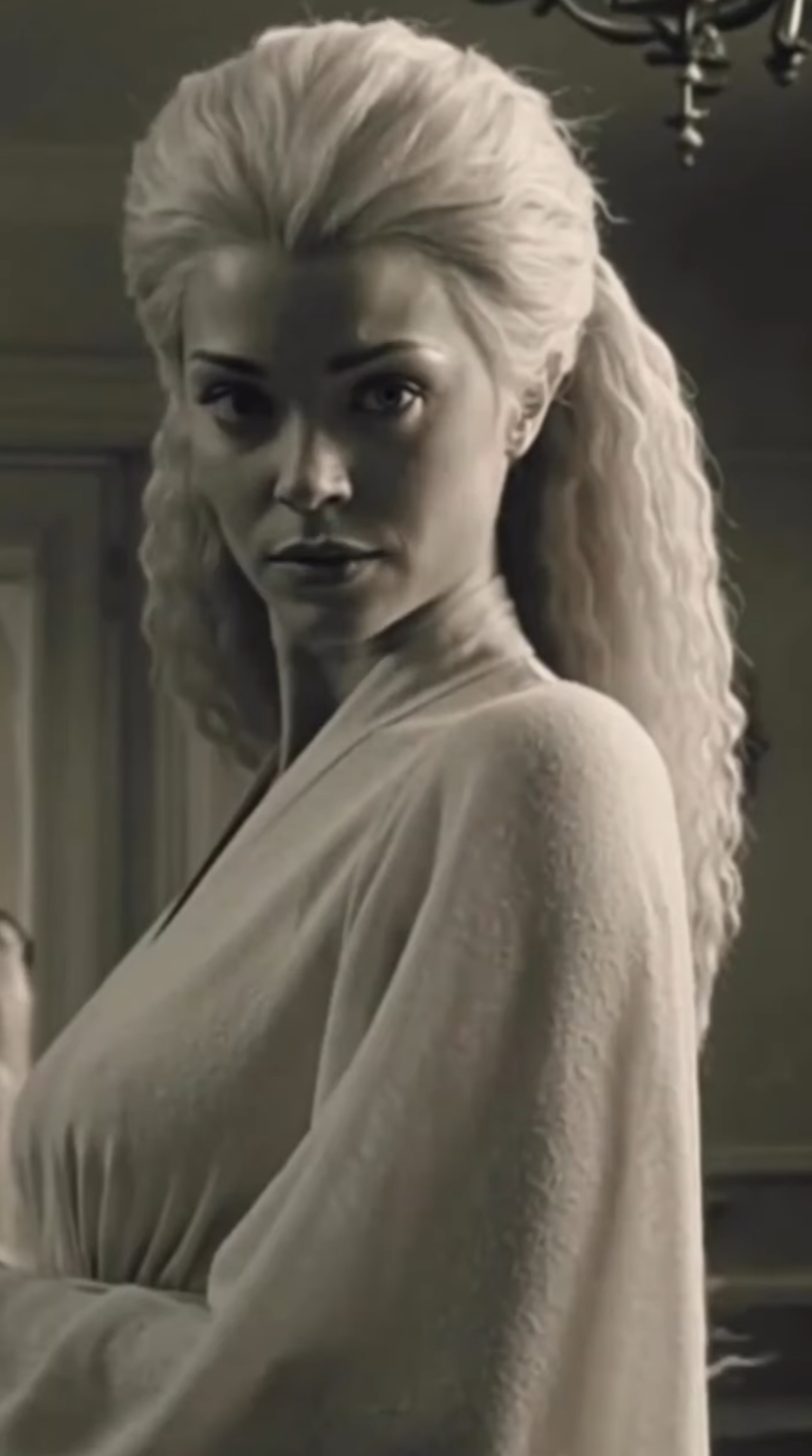 Her contradictions — fire beneath stillness, sensuality within restraint — are not resolved. They coexist, and it is this coexistence that makes her wardrobe breathe.